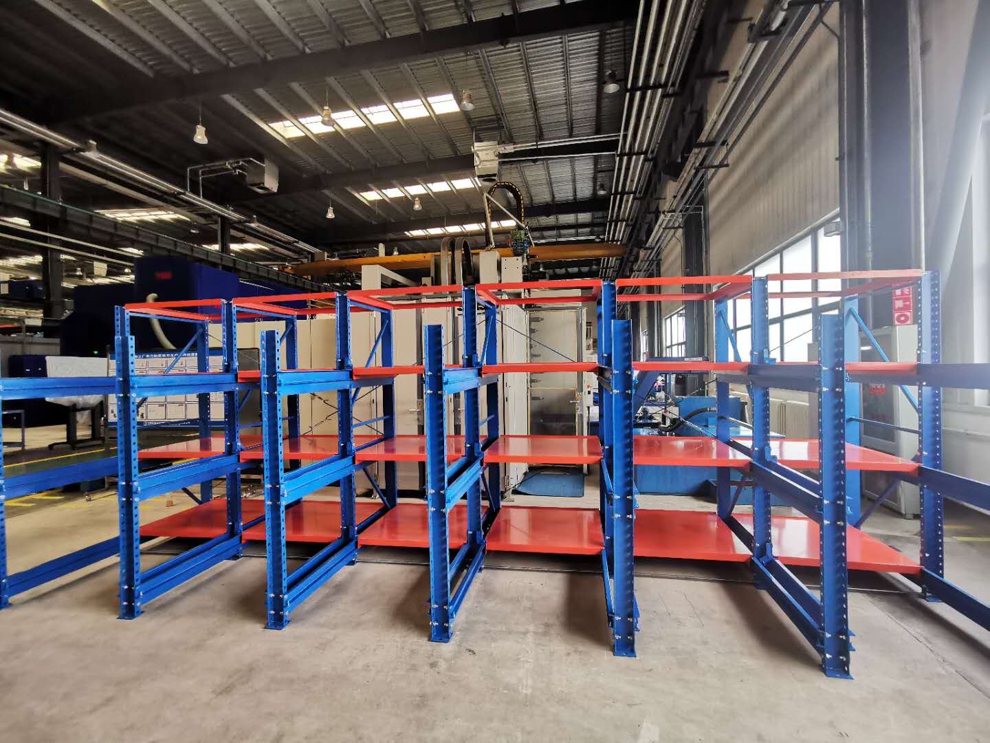 上圖是我司給沈陽一家公司生產定制模具貨架,模具架規格:L5700*D2600*H2090 數量一排、層數為3層加固定板 每層載重1000KG,可抽屜1300MM,立柱10#槽鋼,滑槽4.0+3.0厚度,面板1.5mm 抽屜板可按50倍數調節層高 顏色:立柱藍色/抽板桔紅色 噴涂 酸洗 磷化 防靜電噴涂